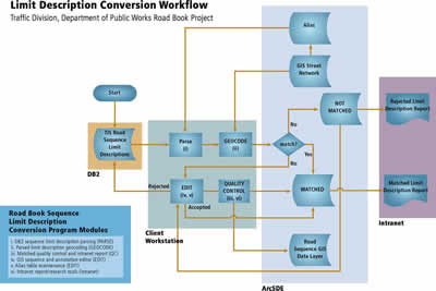 According to Mary Anne Causey of the Traffic Division, the County Road System Maps are popular among staff members from different departments, but the process of manually editing the map book and keeping the road sequence description database up to date means that revised versions of the Traffic Road Book are not published very often. "Our current system for maintaining the original County Road System Maps doesn't allow us to automate updating procedures," said Causey. "It is a strictly manual effort to keep the resources in sync and up to date." Traffic safety analysts use the County Road System Maps to prepare the traffic collision diagrams for the road or intersection involved. However, Traffic Division chief Jacob Babico explained that creating automated collision diagrams can be a labor-intensive process when using the antiquated County Road System Maps to develop the report. "First of all, you cannot simply extract a diagram for a particular road sequence from the map book," said Babico. "Plotting all the accidents that have occurred at each intersection along a road with high traffic volume must be done by hand." Envisioning a New Automated System"What we need is an integrated system," said Babico. "We need to automate TSMS by linking all of the necessary databases in order to supply the most reliable and accurate information about our roadways. The new system would help us compose maps for Traffic Engineering Investigation (TEI) and other reports but would also give us the ability to analyze traffic accidents and road safety in the context of other information." Babico presented his idea of an integrated system to the Information Systems Department (ISD), which provides professional IT and communications services to all county departments. He eventually spoke with Mike Cohen, team leader for the Application Development Division (ADD) GIS. "The timing of Jacob's proposal created a special challenge for us because we were in the middle of one of our biggest projects, namely converting all of the county's GIS data to an ArcSDE Oracle database," remembered Cohen. "We agreed that the first step in modernizing the County Road System Maps was to get the county-maintained road data into the GIS database." Continued on page 2 |