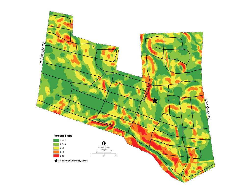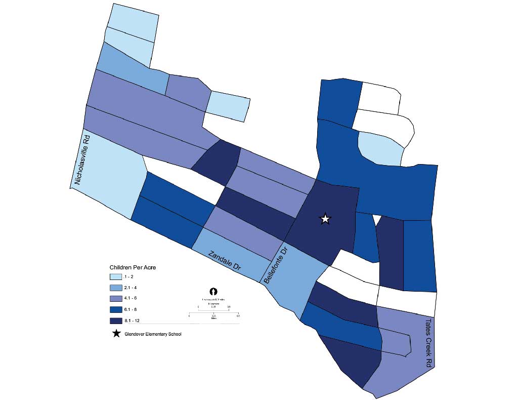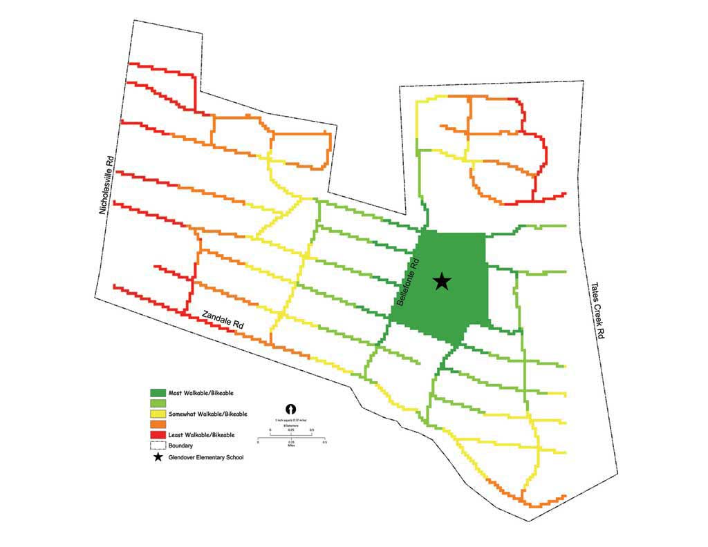 By applying GIS analysis, University of Kentucky undergraduate landscape architecture students have found ways to make it safer and easier for children to walk to school. Concerns with the growing childhood obesity epidemic, increased costs in driving children to school, and fostering the perception that it is more normal to drive rather than to walk to destinations have made walking to school an issue. With ArcView 9.1 and the ArcGIS Spatial Analyst extension, these students identified dangerous walking and bicycling areas, proposed design safety solutions, and evaluated alternatives for improving adverse conditions. The immediate safety, as well as the long-term health, of children walking to and from schools has become an important topic of discussion in communities. The doubling of the childhood obesity rate over the past 30 years has raised concerns about short- and long-term health costs. The Centers for Disease Control and Prevention and the Dietary Guidelines for Americans 2005 recommend that children and adolescents frequently participate in at least 60 minutes of moderate-intensity physical activity, preferably on a daily basis. A short recess period during school does not provide enough physical activity for a growing child. One way to increase physical activity is to incorporate it into the child's daily school commute. However, neighborhoods have often been designed with the automobile exclusively in mind. Consequently, children walking or bicycling to school is not always a safe alternative to the car or school bus. Project DescriptionDuring four weeks in fall 2005, a team of five undergraduate landscape architecture students started a project to learn how suitable a neighborhood was to children walking or riding a bike (i.e., walkability and/or bikeability). They conducted a walkability/bikeability audit of an existing neighborhood that was used in developing and evaluating design options that would increase the overall walkability and bikeability of the neighborhood. The study area location covered approximately .60 square miles and contained neighborhoods built from the early 1900s through the 1960s. Arterial roads bound the study area on two sides and have religious and commercial land uses. A collector road on the third side has mostly residential land use, while the fourth side is bordered by an arboretum and residential facilities for the University of Kentucky. The study area destination was an elementary school located near the center of the study area. From a teaching standpoint, this is a particularly good location for the project. It was developed over several decades spanning World War II and provides opportunities to see how planning attitudes toward vehicular and nonvehicular transportation have been manifested in the landscape. Typically, older neighborhoods have sidewalks on both sides of narrower streets with smaller intersections and no cul-de-sacs, while areas built more recently have wider streets, no sidewalks, and a nonconnecting street pattern. Walkability and Bikeability AuditInitially, team members held a brainstorming session to consider what makes a neighborhood walkable and bikeable. As young designers, students are encouraged to draw upon their own experiences when approaching design issues. After developing an initial list of ideas, the team assigned readings and performed an independent literature review to investigate how other people and organizations have approached similar studies. The team developed a neighborhood audit for streets and intersections that used the Likert Scale rating system. A Likert Scale is a qualitative rating system that is often used to measure judgments. Ratings are indicated along a continuum, in this case on a scale of 1 through 5, indicating the quality of the street or intersection in terms of safety or ease of movement.