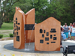 When the bronze tiles were completed, they were integrated into the larger sculpture. "The students approached the sculpture as if it were a community quilt, soliciting donated items from the community. Everyday objects became memorialized in bronze along with the lidar data, creating a permanent record of the present-day Allendale Township," explained Viviano. The geography of the township is not only reflected in the bronze tiles, but it also inspired the shape of the sculpture. The top edge of the sculpture matches the course of the Grand River along the northern border of the township. This edge also features a fountain that draws its water from the Grand River. The bronze model of Allendale Township is a focal point for the sculpture and has provided a medium for members of the community to connect to the work of art. "The lidar data proved to be the most significant visual element locating the sculpture within the community. During the dedication, most members of the community attempted to locate the site by way of the lidar map, creating immediate ties to the sculpture," said Viviano. Allendale Township supervisor James Beelan said the sculpture is the result of a unique group effort. "It's great cooperation between county, local government, and the university," he said. For more information, contact Aaron Bodbyl-Mast About the AuthorAaron Bodbyl-Mast is a GIS technician in the Ottawa County Information Technology Department. A county employee since 2003, he has worked for Ottawa County GIS since 2005. |