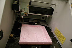 Once the files were exported, the GVSU team began creating a prototype mold for the sculpture using modern industrial equipment. The files were converted from VRML files to STL files in Form Z to create appropriate surfaces for subtractive rapid prototyping. "We used a Roland MDX-40 CNC milling machine to carve 1/8-mile lidar quadrants as 10-inch by 10-inch tiles. The project has a total of 36 tiles," said Viviano. "The tiles were carved directly in foam, allowing seamless processing in the foundry. The foam is a great pattern for the sodium silicate-bonded sand-molding process. Once a two-part sand mold is made of the pattern, the foam pattern is removed, and bronze can be poured directly into the negative space. Finishing the bronze is simple with an application of patina to give it a darker color with highlights and a sealant for protection." A Work of Art Is Born