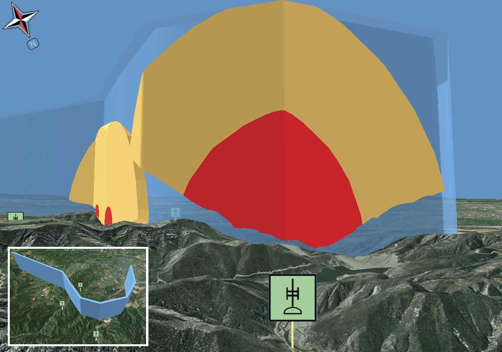 Advanced users can expand this analysis by converting the infinitely thin flight paths into volumetric flight corridors. One simple way to do this is to buffer the flight path into a polygon and extrude that polygon between a minimum and maximum altitude range. Using the volume-based Intersect 3D geoprocessing tool (rather than the line-based Intersection tool), all the threat volumes within the corridor can be derived. This provides additional options for accessing flight safety. For example, the north side of a flight corridor could be safer than the south. It also provides a more complete summary of the total dangers associated with a flight corridor.