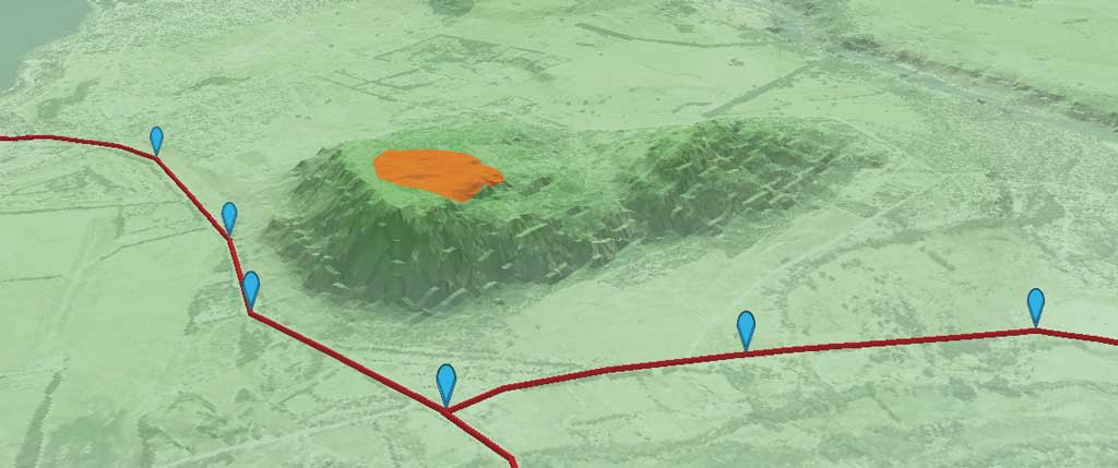 The virtual lines indicate elevations that cannot be seen from the road. The top vertex of each is displayed as a point feature.