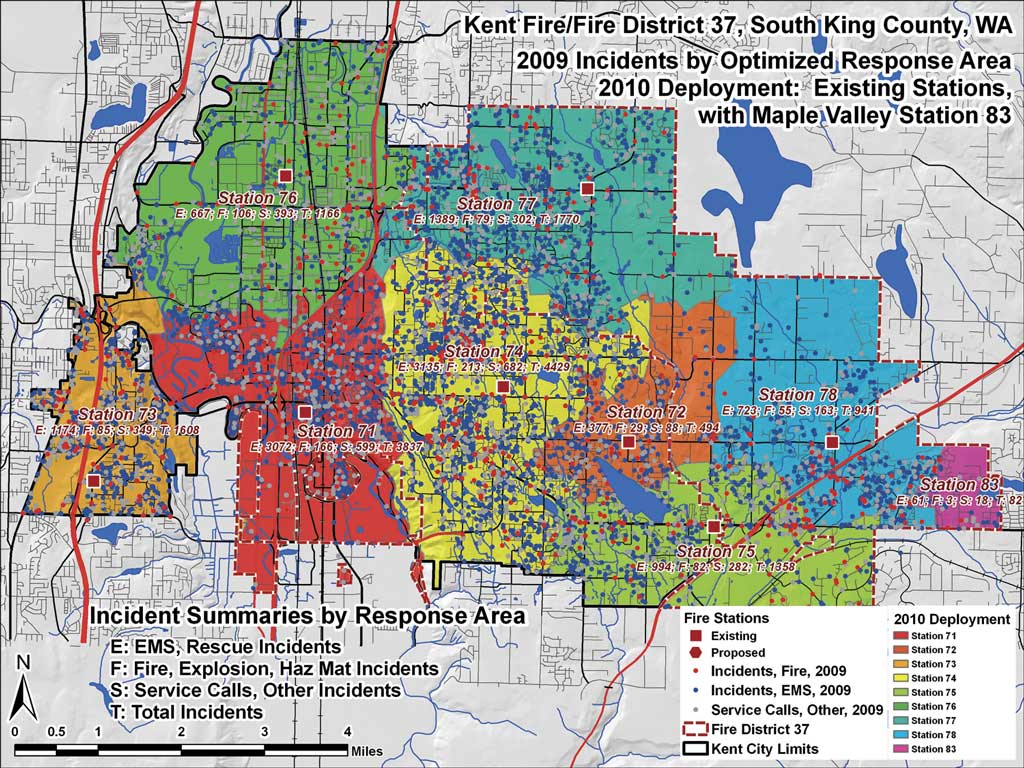 Recent ArcUser articles include many examples of public safety modeling that use actual data provided by Kent Fire and address topics such as the fundamentals of planning, preparedness, response, and recovery; the use of data for master plans and capital facility plans; planning operations; and assessing and presenting performance measures.