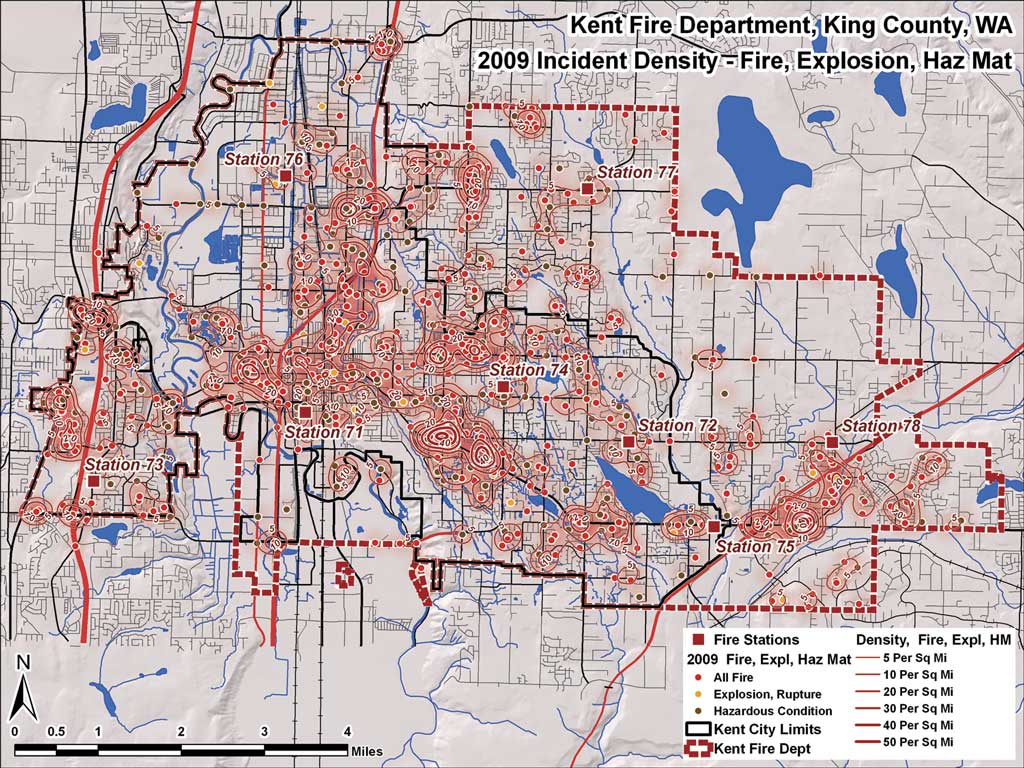 Incident density, or "hot spot," maps show where fire, explosion, and hazardous materials incidents occur with greatest frequency.