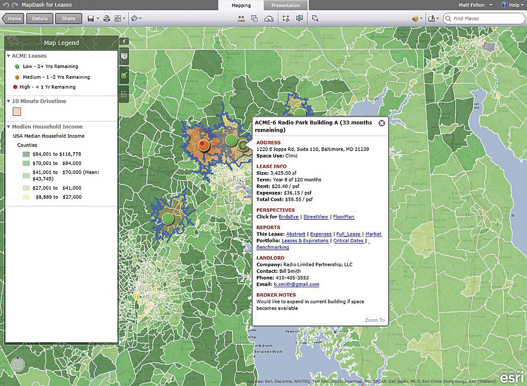 "MapDash allows our customers to see their entire portfolio, not just one lease at a time," said Felton. "Accessing information in this manner is better and faster and keeps our clients more informed. This gives them more leverage in the process, and this translates into healthier retail stores."