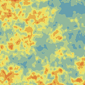Figure 2 shows simulated surfaces with three different power values of α: α=0.1 (top), α=1 (middle), and α=1.9 (bottom). Zooming in on any part of the surface shows a similar random walk surface. The correlation model with α=1, a linear model shown in the middle image, corresponds to the regular Brownian motion, process with independent step increments. However, the increments are dependent on fractional Brownian motion. If there is an increasing pattern in the previous steps, then it is likely that the current step will increase when the power value of α is greater than 1 and decrease when α is less than 1. In Figure 2, the simulated surface with small α (top image) looks like a mixture of a moderate trend and random noise while the simulated surface with large α (bottom image) shows nearly noiseless large scale data variation.
