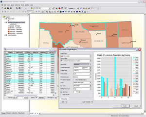 With ArcGIS Desktop 9.2, it is easy to interactively highlight and present specific information in a graph using selections from a table or map. Changes in selections made on the map, table, or graph are immediately reflected in the other views.