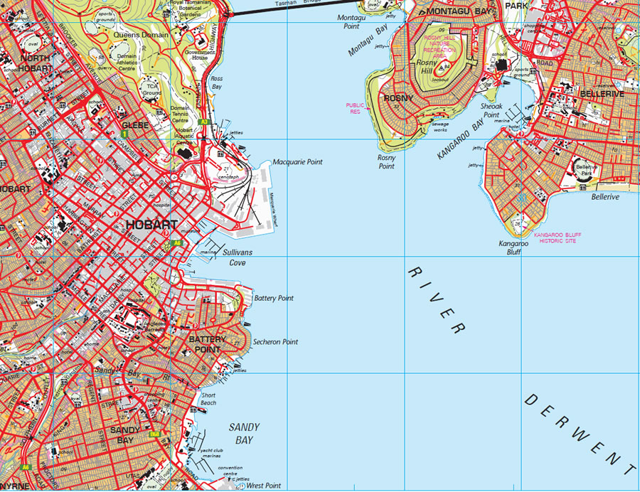 ![]() Kangaroo Bay in Hobart, a city that hosts the finish of the annual Sydney to Hobart Yacht Race every winter. |