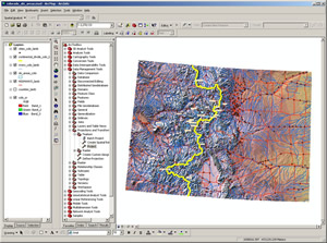 A map of Colorado ski areas in ArcGIS, shown on the right, was created from public domain data sources. The shaded relief is a 200-meter-resolution image from http://nationalatlas.gov, clipped to the state of Colorado, with highways from the Colorado Department of Transportation, rivers from the Colorado Division of Water Resources, counties from ArcLessons, and ski areas from the U.S. Forest Service.