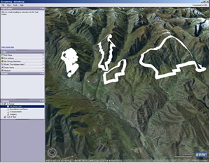 ![]() The north-facing slopes of Aspen, Buttermilk, and Snowmass ski areas are obvious after displaying the ski area data within ArcGIS Explorer. |