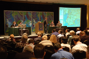 ![]() Business professionals gather at the Esri Business Summit to learn about GIS. |