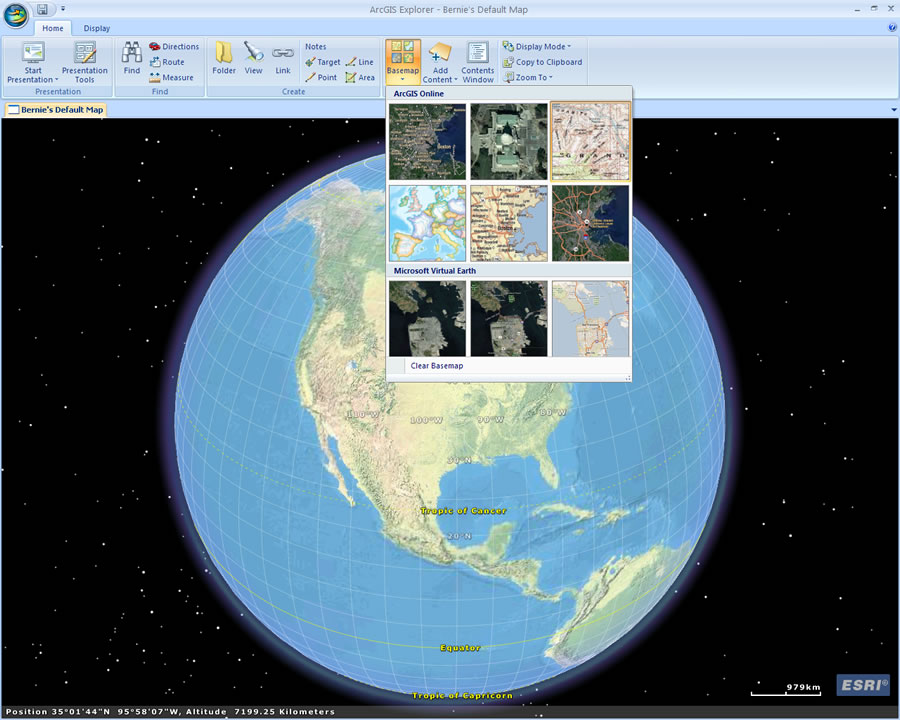 ![]() ArcGIS Explorer offers continually updated basemaps and layers from ArcGIS Online. |