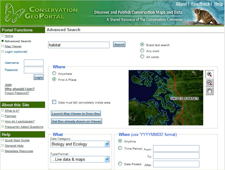 To help people working in conservation locate this elusive data, a group of organizations working under the umbrella of the Conservation Commons recently developed the Web-based Conservation GeoPortal (www.conservationmaps.org). It was created to help solve the problems of finding, evaluating, and sharing data and maps for conservation.