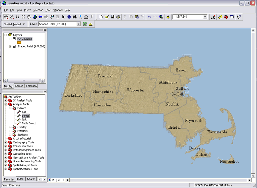 - If it is not already available, open ArcToolbox. Choose Analysis Tools > Extract > Select.