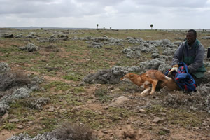 In 1996, EWCP launched a domestic dog vaccination program, aiming to vaccinate 70 percent of the 20,000 dogs living in and around the national park. Theoretically, such vaccinations would curtail the disease and stop it from spreading to the wolves. However, dogs have a tough life and a short lifespan in Ethiopia, with many vaccinated dogs dying young and puppies constantly being born that need to be inoculated. Furthermore, during the dry season, herders and their livestock and dogs travel into wolf range from many miles away to take advantage of the grazing still available within the park. This increased contact with the Ethiopian wolves raises the risk of rabies spreading to the wolves.