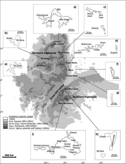 The Ethiopian highlands, where the wolves reside, have become some of the most densely populated agricultural areas within Africa. With human development surrounding and encroaching on the animals' habitat, the wolves are confined to small areas and isolated from other wolf populations.