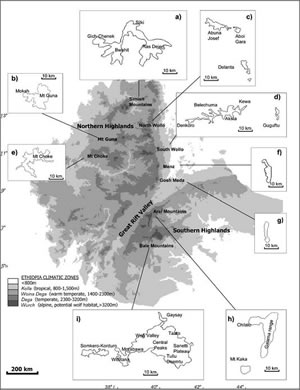 Based on the maps and EWCP's understanding of the two previous rabies epidemics, the disease's potential spread was estimated. Decisions about where to set the live traps for the wolves were also made before mobilizing the vaccination team. Since restrictions exist on the number of wolves that can be vaccinated, it was crucial to ensure that every vaccination was utilized to maximum effect. As Morebawa was the most immediately threatened subpopulation, trapping the wolves for vaccination was focused on the Web Valley, East Morebawa, and the Web Isthmus (a small corridor) between these two populations. The potential significance of this natural bottleneck to wolf distribution was highlighted by the GIS analysis.