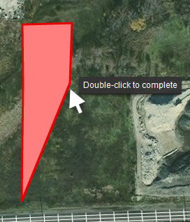 Step 2: From the Create My Plan palette, click a type of land use to enable it for sketching, and click the map to add the shape of the polygon. As you click, you can see the feature being added to the map. Double-click to finish the sketch. If you want to change the feature's shape, click on it to select it, which reveals handles at each node you added. Drag a node to move it, or pause the pointer on an edge to reveal a new node you can add to the shape.