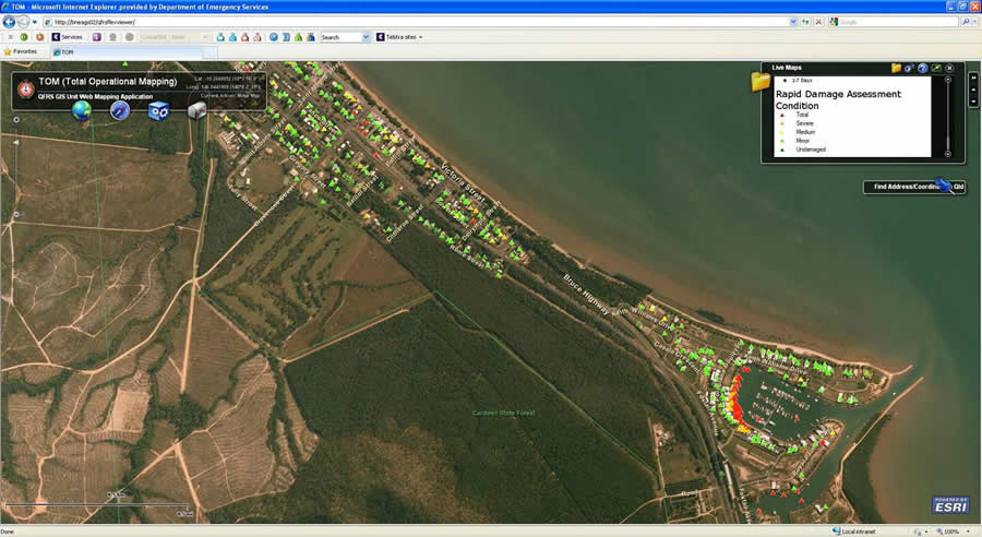 After the floodwaters receded, QFRS urban search and rescue teams then used the initial intelligence gathered via A-TOM to carry out more than 8,000 Rapid Damage Assessments (RDAs) using Esri ArcPad mobile GIS software on Trimble Nomad devices. The data became the baseline for measuring the status of the reconstruction effort; in addition, the information was supplied to insurance companies to help speed up the payment process from the claims.