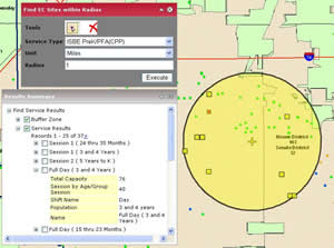 ![]() With IECAM, users can find early childhood services within a radius or buffer zone. |
