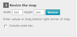 Step 3: Now you get to choose the size of the map. Enter the width and height in pixels and click Resize to redraw the map. You can also resize the map by dragging the handle that is in the bottom right-hand corner of the map and looks like this: