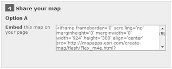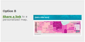 Step 4: You have two options for sharing your map. Use Option A if you want to embed the HTML on your Web site or MySpace page. Use Option B if you want to share your map via e-mail, Facebook, Digg, or Twitter.