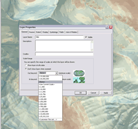 - When setting the scale range for a layer, the current scale can be used simply by choosing <Use Current Scale> from the drop-down menu. A previously specified scale range can be removed easily by choosing <None> from the drop-down menu.