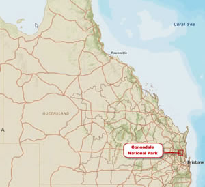 Toby Clewett, Chris Jones, Dean Derby, Lee King, and Martin Browne, from Sunshine Coast Regional Council's geospatial team, discovered the tree on November 13, 2011, in Conondale National Park, about 50 kilometers west of Maroochydore. This occurred during a project to precisely map all vegetation on the Sunshine Coast in southeast Queensland. Clewett, a geospatial analyst with the council, said the GIS-driven find cemented the Sunshine Coast's reputation as a vibrant, green, and diverse region.