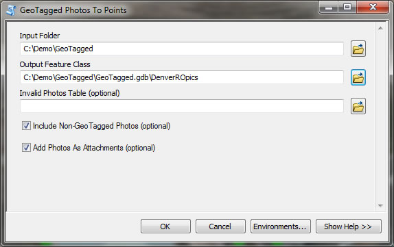 Here's how to use the tool to display geotagged photographs in ArcMap: