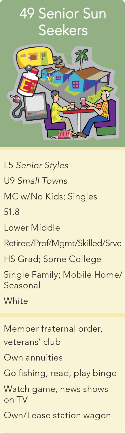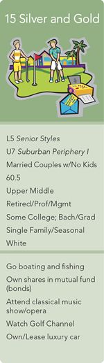 Segmentation systems operate on the theory that people seek and live near others with the same tastes, lifestyles, and behaviors. When seniors are segmented by affluence, education, employment, and lifestyle, differences in their preferences become more apparent. Their behaviors—including product, leisure, and media preferences—can be measured, predicted, and targeted.