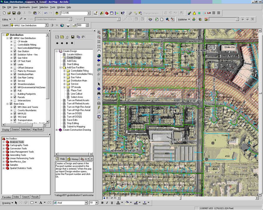 To enhance the geodatabase, New Mexico Gas Company brought in aerial photography and county street, parcel, and environmental data. The utility built specific applications for both mapping and design of distribution pipelines and other assets.