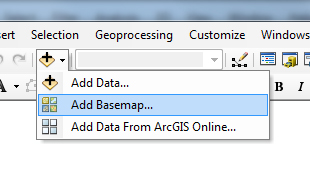 Step 4: Add a basemap layer to the document by clicking the drop-down arrow next to the Add Data button and select Add Basemap.