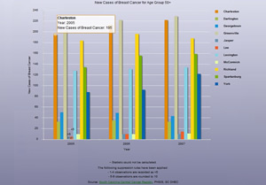 Visitors to the South Carolina DHEC site can access information by county, such as the number of fire-related carbon monoxide poisoning deaths and breast cancer cases and the hospitalization rates for heart attacks and asthma.