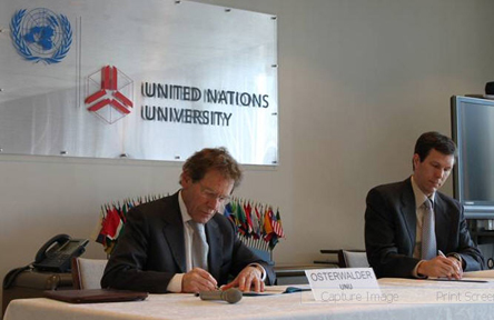 Redlands, CaliforniaEsri and United Nations University (UNU) recently approved a memorandum of understanding (MOU) at the university’s headquarters in Tokyo, Japan. They will collaborate on research, create Centers of Excellence, promote the exchange of graduate students, and provide geographic information system (GIS) training opportunities within and by UNU. “This agreement will promote enhanced spatial information use in UNU’s research and education initiatives,” said UNU rector and under-secretary-general of the United Nations professor Konrad Osterwalder. “It will also support the increased presence of young researchers at UNU campuses and complement existing and planned research and education programs.” Adds Michael Gould, Esri director of education solutions, “The MOU will help connect promising graduate students to real-world problems, such as climate change, water resource management, food security, natural hazards, and sustainable development, and critical issues being researched at UNU institutes using GIS. Esri is pleased to be able to support their efforts.” UNU has used ArcGIS software since 2006. Projects include the Wildlife Enforcement Monitoring System, which documents and analyzes transboundary wildlife trade for monitoring purposes and compliance with the Convention on International Trade in Endangered Species of Wild Fauna and Flora. The university has also used GIS to assess flood risk and analyze climate and land-use change impacts on water resources in the Asia Pacific region. For more information about Esri's higher education program, visit www.esri.com/university. # # # About UNU Press Information: |