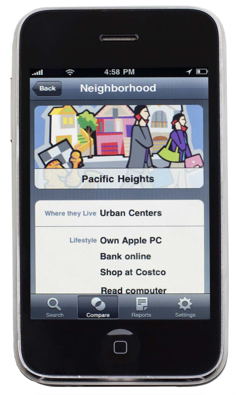 Using the latest technology, Realtors and their clients can take to the streets searching for homes that match their lifestyle based on information including demographics, psychographics, and neighborhood attributes. Using this type of "lifestyle search," the best candidates can be highlighted and ranked according to how many client preferences are met. This gives those interested in buying a home the ability to quickly understand the areas they are looking in and compare similar homes.