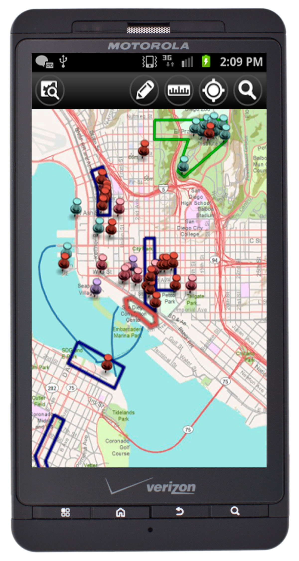 ArcGIS for Android is a native application that serves as a mobile gateway into the ArcGIS system. It provides an intuitive user experience for querying map layers and data. People can also use the app to edit features and attribute information on the fly while collecting field data and performing inspections. In addition, ArcGIS for Android includes a legend, a Favorites feature, and a tool for measuring area and distance.