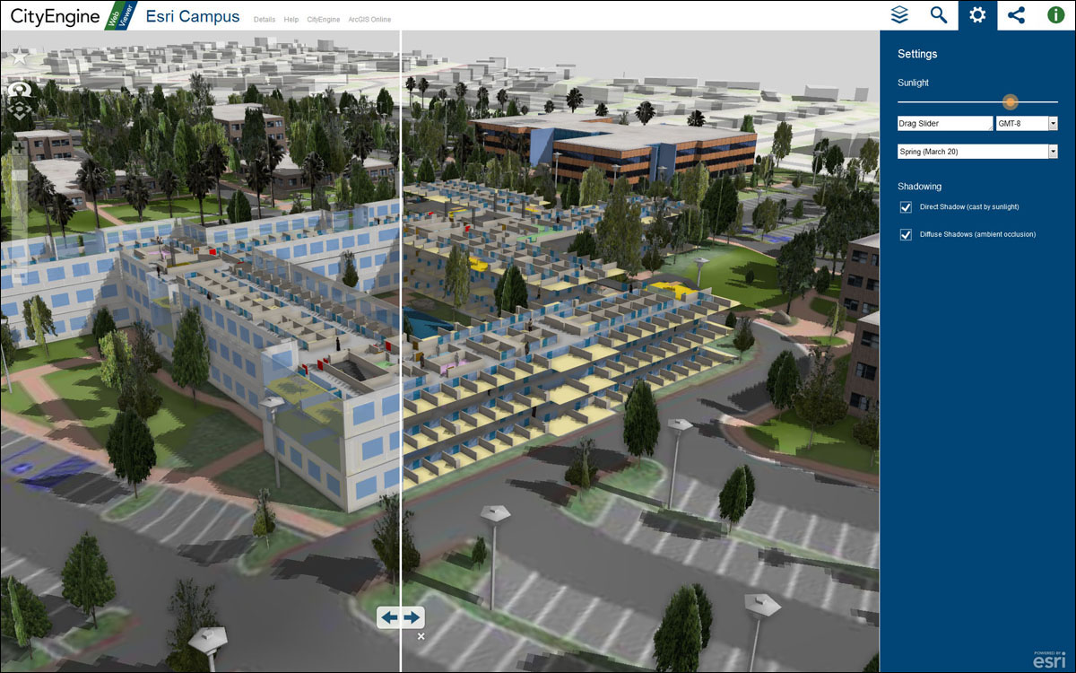 "Smart cities of the future will be designed more transparently, and the design process will engage citizens," says Esri president Jack Dangermond. "With CityEngine 2012, smart city scenes can be published directly on ArcGIS Online for sharing new developments, design proposals, and before-and-after-comparisons with nontechnical decision makers and the public."