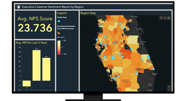 Oprogramowanie ArcGIS umożliwia dostawcom usług komunikacyjnych udostępnianie informacji o usługach, dostępności zasięgu i czasie oczekiwania na przywrócenie sprawności dzięki łatwym w obsłudze mapom wizualnym. Może to ułatwić klientom zgłaszanie miejsc występowania problemów z obsługą i luk w zasięgu, a zespołom odpowiedzialnych za zarządzanie umożliwić wizualizację nastrojów klientów.