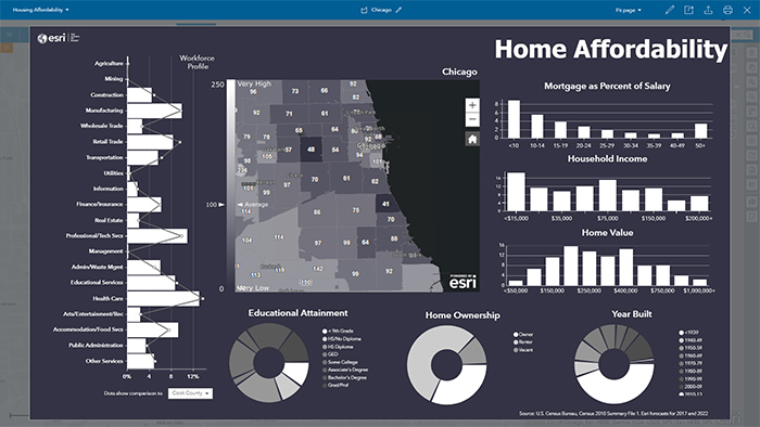 Combine seus dados com os dados da Esri em infográficos e relatórios visualmente atrativos ou crie seus próprios para combinar com a identidade da sua marca.