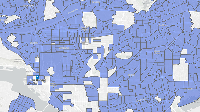 Use o fluxo de trabalho do mapa codificado por cores para identificar tendências importantes e características do cliente que influenciam o mercado. Selecione entre milhares de variáveis de dados disponíveis e visualize-as em um mapa.