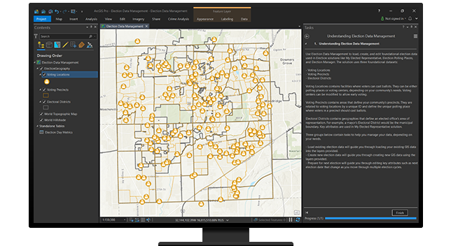 ArcGIS Solutions for Election Management Election Management 解决方案模板是一组预配置的地图和应用程序,选举工作人员可以快速部署这些地图和应用程序。